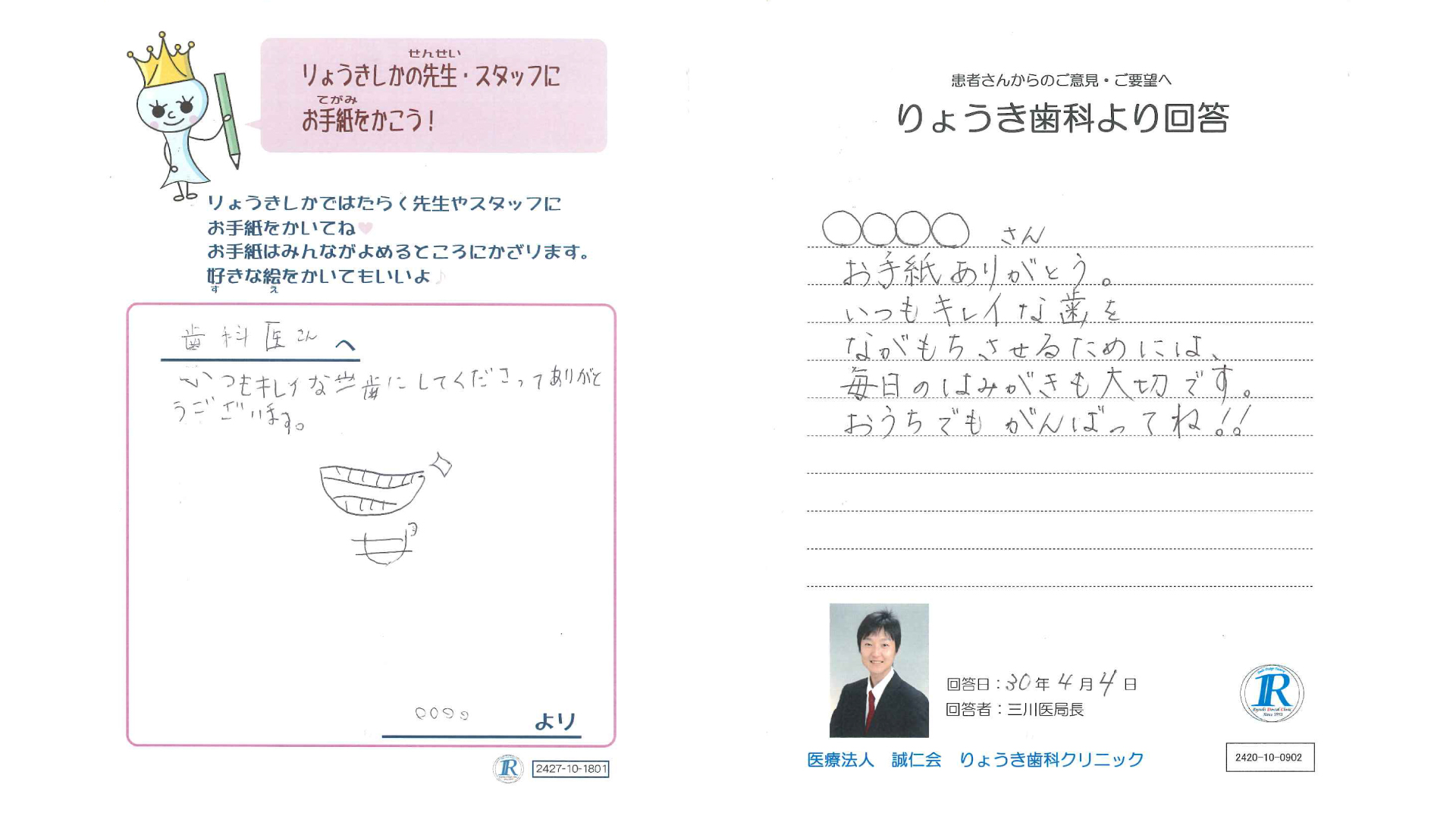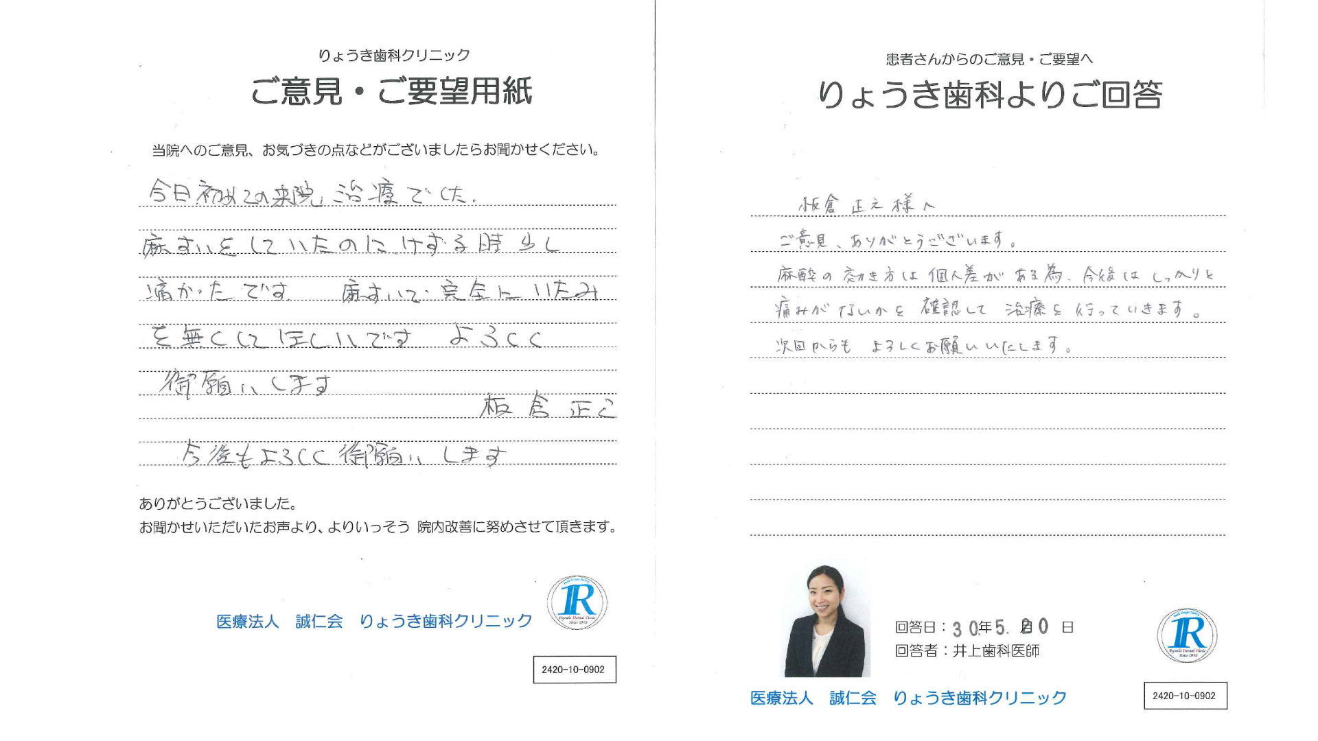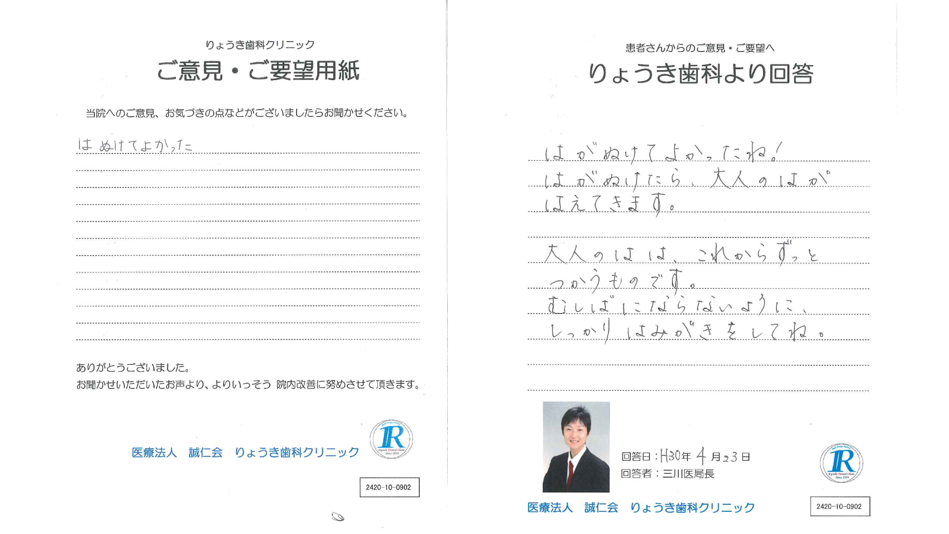 ご意見用紙で頂いた、貴重な患者様のお声は院内ではもちろん、HP上でもお答えする事となりました。