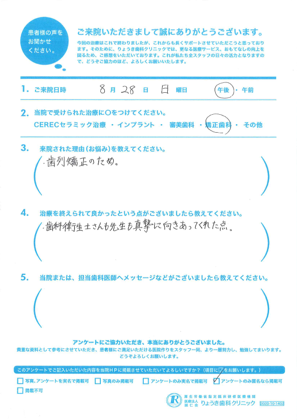 当院または、担当歯科医師へメッセージなどがございましたら教えて下さい: